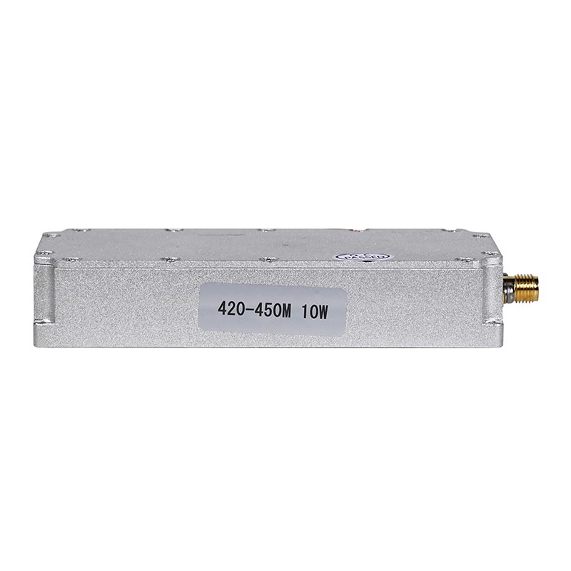 مدمج وقوي، مضخم إشارة الطائرات بدون طيار 10 واط المضاد للطائرات بدون طيار هو مضخم طاقة RF يمكنه مقاومة الطائرات بدون طيار بشكل فعال في مجموعة متنوعة من نطاقات التردد، مثل 433 ميجا هرتز، 900 ميجا هرتز، 1.2 جيجا هرتز، 1.5 جيجا هرتز، 2.4 جيجا هرتز، و 5.8 جيجا هرتز. مع جهد إمداد تيار مستمر 27-28 فولت وإخراج ثابت 10 وات، فإنه يضمن تداخلًا يمكن الاعتماد عليه مع الطائرات بدون طيار غير المعتمدة. تشتمل الخصائص المهمة على نطاق واسع لدرجة حرارة التشغيل يتراوح من -20 درجة مئوية إلى 80 درجة مئوية، ووصلات SMA لاتصالات التردد اللاسلكي الموثوقة، وتصميم خفيف الوزن يزن 105-109 جرام. تعد هذه الوحدة أداة حيوية لحماية المجال الجوي والقضاء على تهديدات الطائرات بدون طيار في مجموعة متنوعة من الإعدادات بسبب أدائها الممتاز وقدرتها على التكيف.